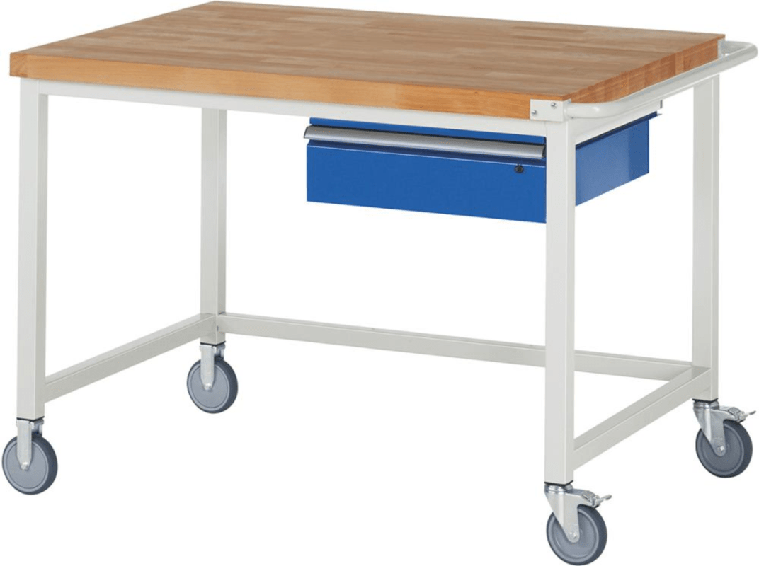 • Fahrbar: mit 2 Bock- und 2 Lenkrollen mit Feststeller. Flächenlast max. 450 kg