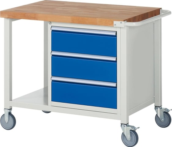 Mobile Werkbank, 3 Schubladen, 1 Stahlblech-Ablageboden