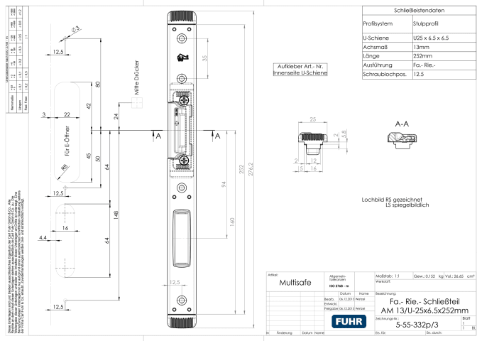 FUHR Profilschließblech RFP55332; Produkttyp: Profilschließblech; Produkttyp (Hersteller): Schließteil; Ausfräsung: mit Fallen und Riegelausschnitt; Material: Stahl; Einsatzbereich: Türrahmen; Form: k