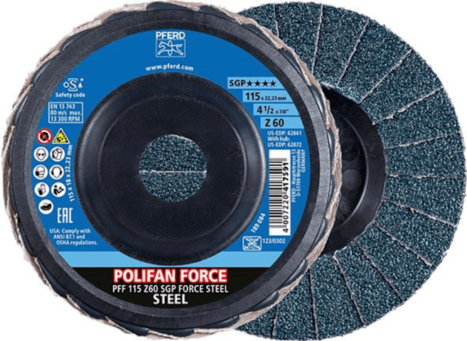 PFERD Fächerschleifscheibe FORCE SGP STEEL 115 mm Z 60