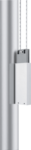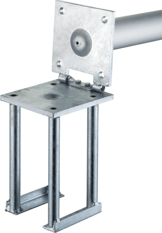 Hinweis: Befestigungsart bis 10 m per Bodenhaltung (Kunststoff-Bodenhülse zum Einbetonieren), ab 10 m mit Kippgelenk-Halterung.