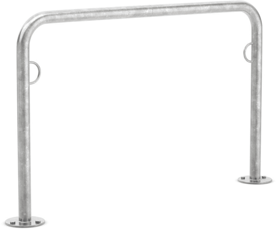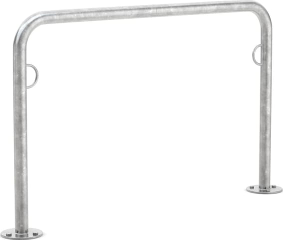 Fahrradanlegebügel, mit Ösen • Für jede Fahrradgröße nutzbar • Standsicherheit und Diebstahlschutz in einem • Höhe: 800 mm • Material: stabil verzinktes Stahlrohr, Ø 48 mm • Mit Ösen für die Kette Lieferung: Zerlegt im Karton.