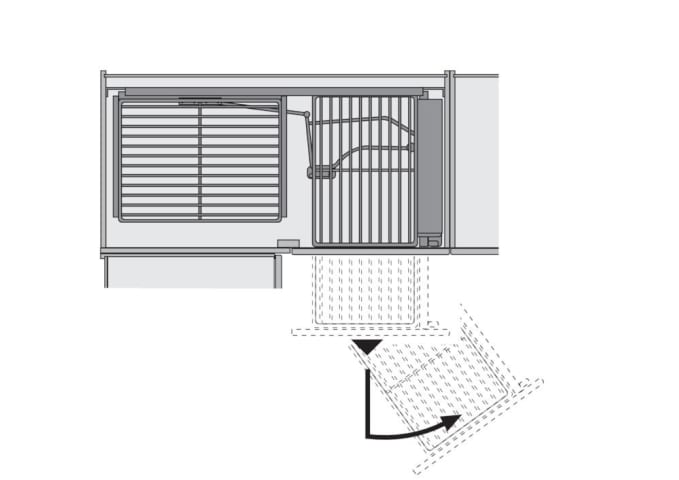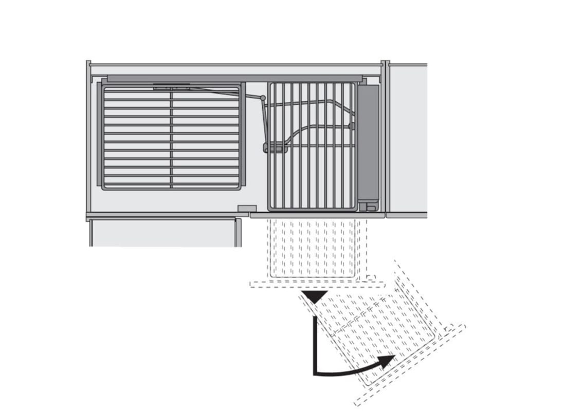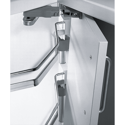 • Basisbeschlag für Korpusmaße 800 x 800 und 900 x 900 mm• Die Revo 90° Mechanik lässt die Fronten beim Öffnen des Schrankes in den Korpus hineinschwenken und ermöglicht so einen freien Zugriff auf