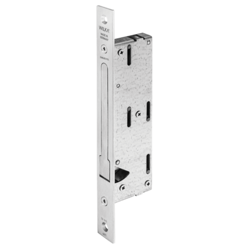 Funktion Durch Betätigung des in den Stulp integrierten Hebels werden die Treibriegelstangen in das Falztreibriegelschloss gezogen. Die Treibriegelstangen werden nach Freigabe des Hebels durch Federdruck wieder aus dem Falztreibriegelschloss geschoben und der Hebel wird in den Schlossstulp gezogen
