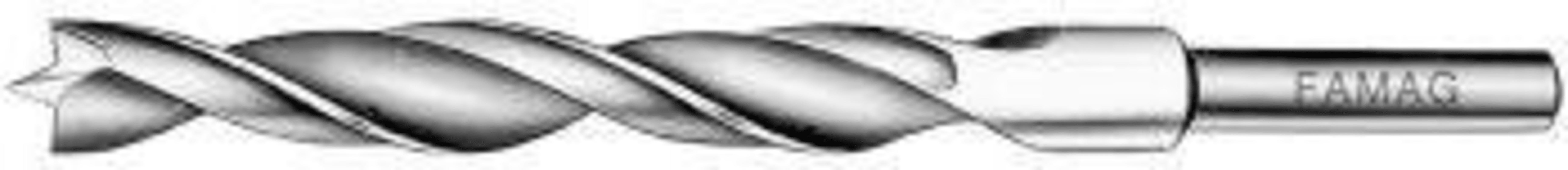 Mit Zentrierspitze, 2 Hauptschneiden und vorstehenden Schneidkanten. Für maßhaltige Bohrungen in Weich- und bedingt einige europäische Harthölzer. Der preiswerte Spiralbohrer.
