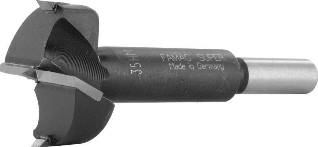 Super-Kunstbohrer HM Präzisionsausführung. Mit Zentrierspitze, 2 Hauptschneiden, 2 Vorschneider. Maschinell genau maßhaltig geschliffen. Hohe Standzeit durch hochwertige HM-Bestückung. Für saubere, ausrissfreie und maßhaltige Bohrungen in Harthölzern, exotische Hölzer, verleimte und kunststoffbeschichtete Holzplatten, Spanplatten und furnierte Hölzer.