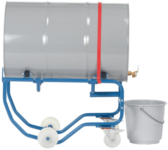 • Mit Kunststoff-Rollen: zum Drehen des Fasses