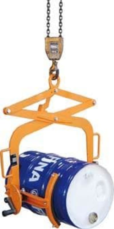 Fasswendezange • Konstruktion: stabile Stahlkonstruktion mit Scherenmechanismus und Kurbel zur Einstellung der Kippstellung • Gummianschlag: auswechselbar, zur Vermeidung von Fassbeschädigungen • Arretierhebel: zur Sicherung der Offenstellung Hinweis: Zum vertikalen oder horizontalen Heben und Transportieren von Fässern.
