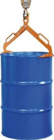 Fasszange, stehende Fässer • Konstruktion: stabile Stahlkonstruktion mit Scherenmechanismus und Fassgreifzangen • Aufnahme: mit Aufhängeöse für Lasthaken Hinweis: Für 200-l-Stahlspundfässer.