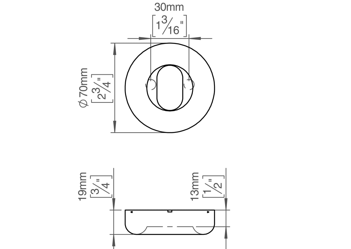 FAT Rosette für ovalen Zylinder, Ø70x13mm, cc 30mm, satiniert, aufschnappbar. Die FAT-Kollektion ist eine Serie von architektonischen Beschlägen, die vom englischen Industriedesigner Tom Dixon entworf