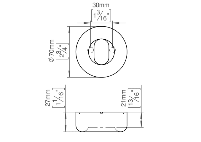 FAT ROSETTE M. LOCH OVAL Ø70X21 CC30 SATINIERT (12900202210)