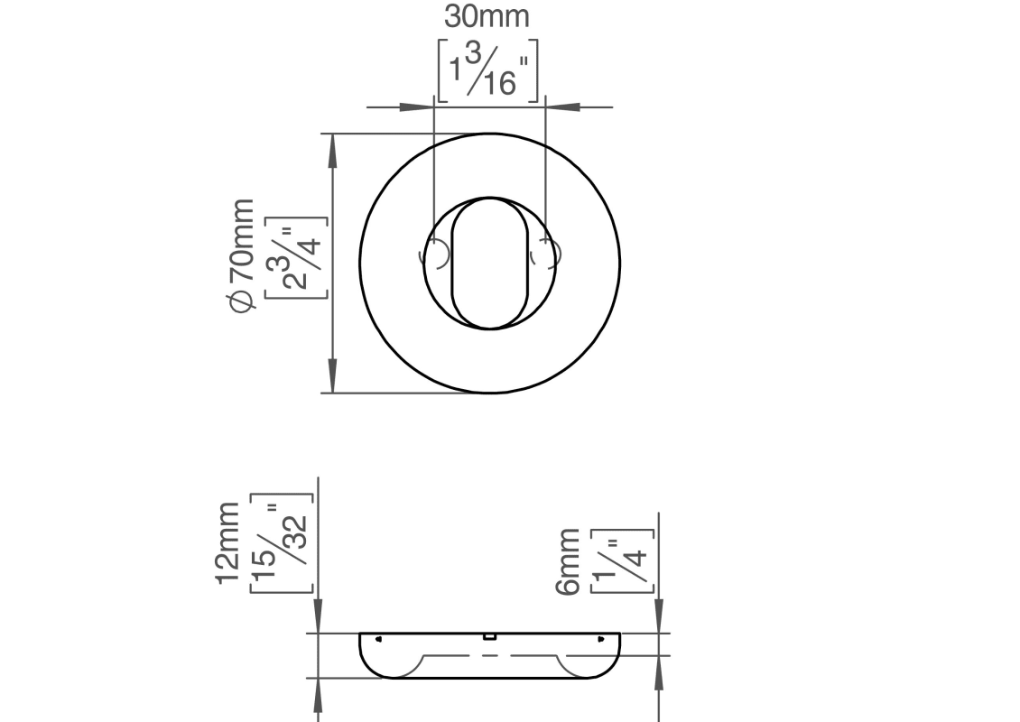 FAT ROSETTE M. LOCH OVAL Ø70X6 CC30 SATINIERT (12900202060)