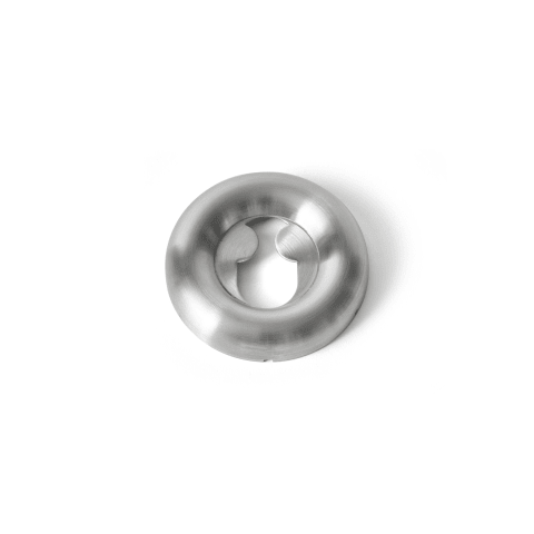 FAT-Rosette mit Rokoko-Loch, Ø70x13mm, cc 30mm, satiniert, einrastbar. Die FAT-Kollektion ist eine Serie von architektonischen Beschlägen, die vom englischen Industriedesigner Tom Dixon entworfen wurde. Gefertigt aus hochwertigem, rostfreiem Edelstahl AISI 316, der vor starker Korrosion schützt. B: 70mmxH: 70mmxT: 19mm. 20 Jahre Garantie.