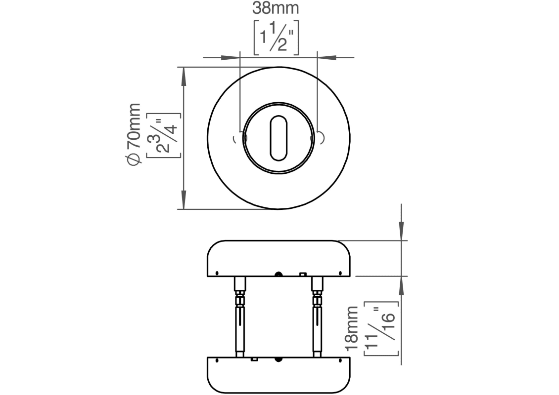 FAT-Rosette mit Schlüsselloch, Ø70x17mm, cc 38/27mm, satiniert. Die FAT-Kollektion ist eine Serie von architektonischen Beschlägen, die vom englischen Industriedesigner Tom Dixon entworfen wurde. Gefe