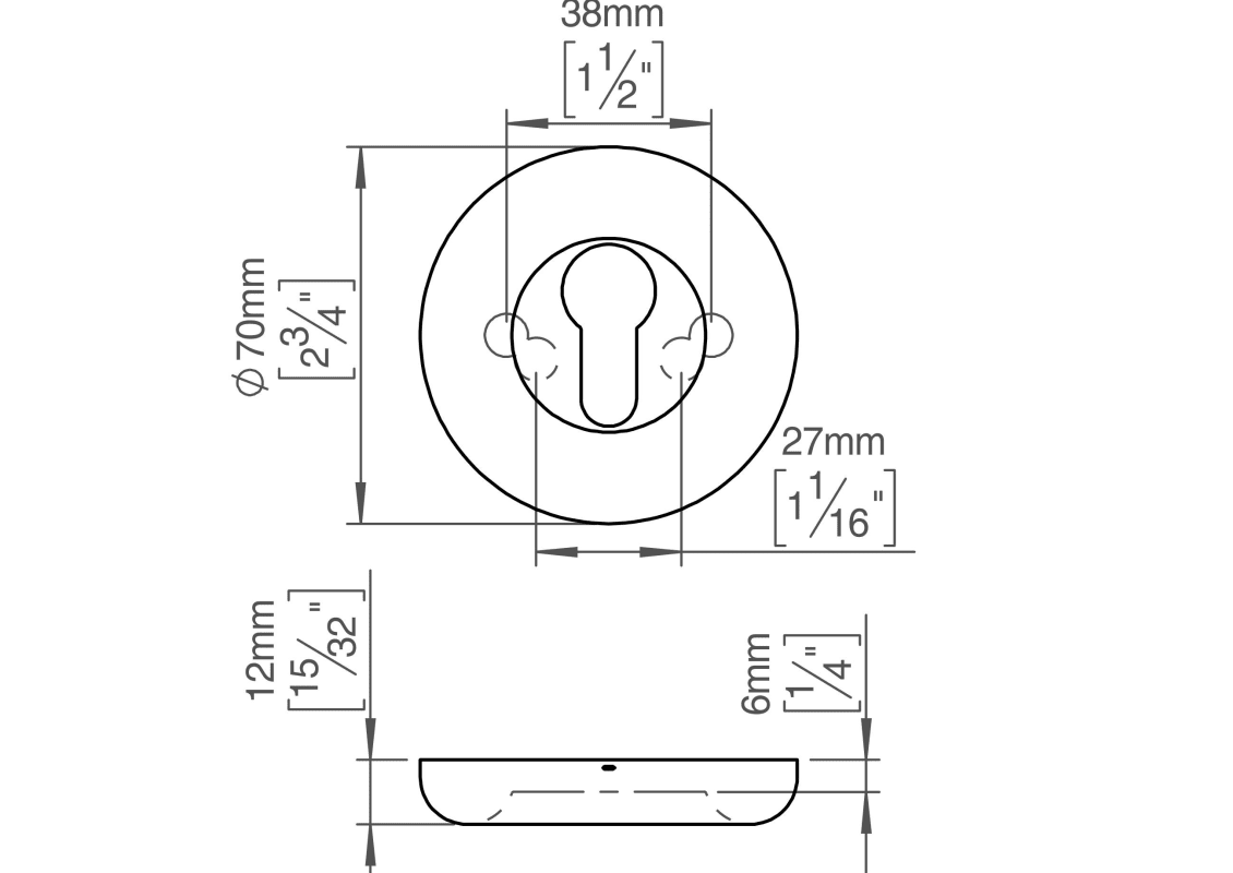 FAT ROSETTE M. SCHLÜSSELLOCH Ø70X6 CC38/27 SATINIERT (12900302060)