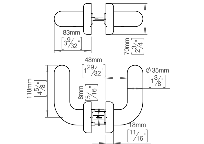 Türdrücker FAT, 8x8mm, Ø70mm, cc 30/38mm, 33-59mm, satiniert. Die FAT-Kollektion ist eine Serie von architektonischen Beschlägen, die vom englischen Industriedesigner Tom Dixon entworfen wurde. Gefert