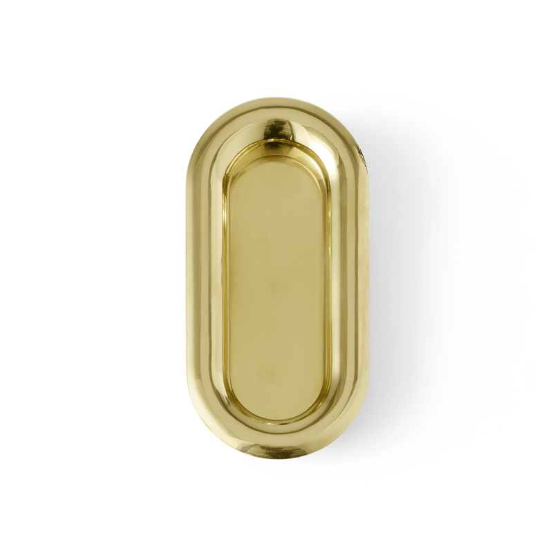 FAT Unterputzgriff, oval, 70x140mm, poliert. Die Kollektion FAT ist eine Serie von architektonischen Beschlägen, die vom englischen Industriedesigner Tom Dixon entworfen wurde. Material: Messing. Durc