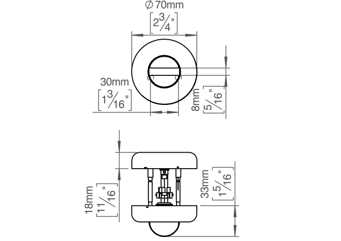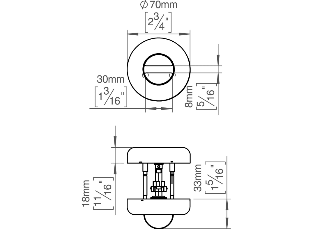 FAT WC-Anzeiger, 5V90, Ø70mm, cc 30mm, 34-48mm, poliert. Die Kollektion FAT ist eine Serie von architektonischen Beschlägen, die vom englischen Industriedesigner Tom Dixon entworfen wurde. Material: M
