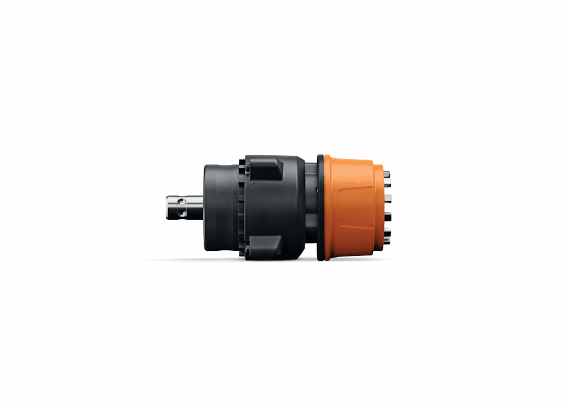 Schnelles Gewindebohren dank integriertem Wendegetriebe für automatischen Drehrichtungswechsel. Der Schnellrücklauf im Linkslauf ermöglicht dabei kürzere Taktzeiten. Der Gewindebohrer wird per Spannzange formschlüssig an seinem Vierkant verspannt, was ein Durchrutschen im Arbeitseinsatz verhindert. Kompatibel zu allen FEIN Akku-Schraubern mit QuickIN Schnittstelle.