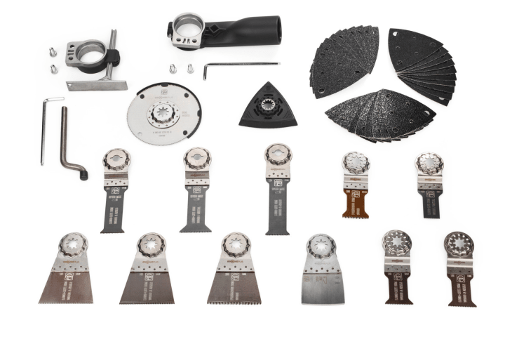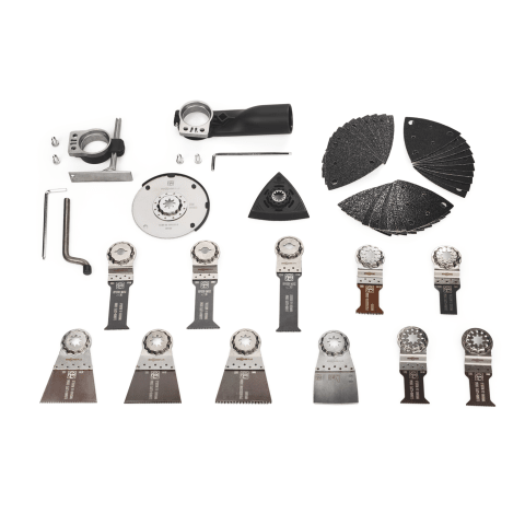 45-teiliges Zubehör-Set mit umfangreicher Sägeblatt-Ausstattung für schnelle und präzise Sägearbeiten bei allen Montagearbeiten. Passend für FEIN Multitools mit StarlockMax-Aufnahme sowie alle anderen