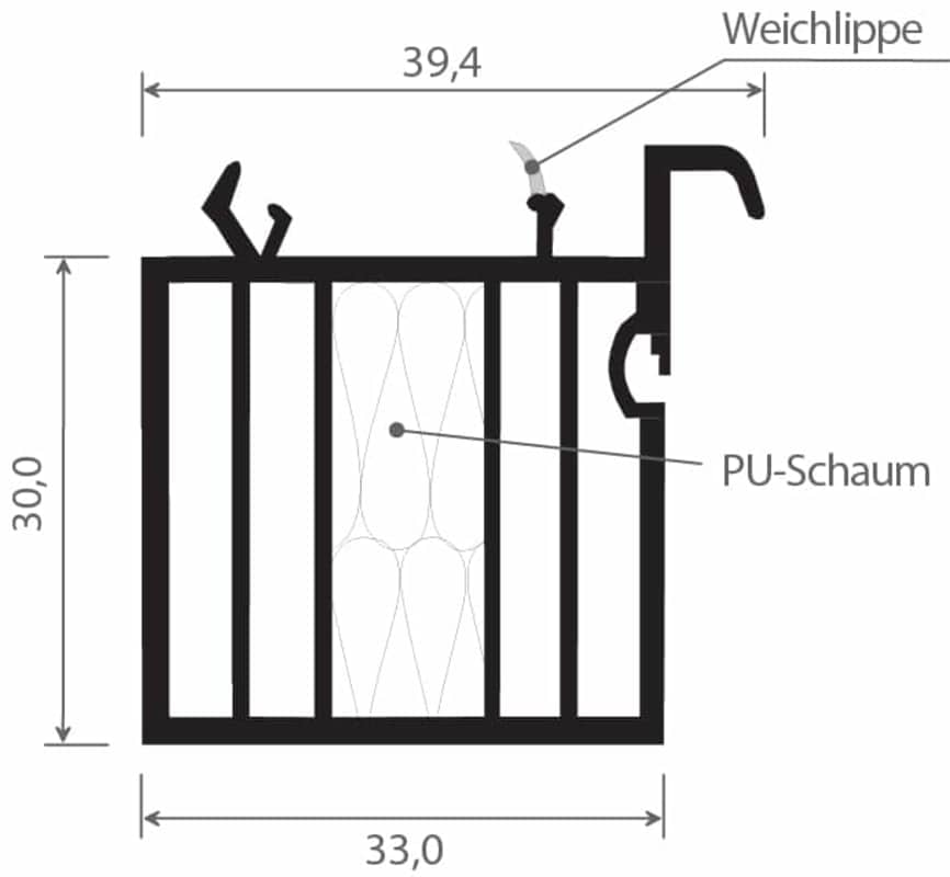 Fensterbankanschlussprofil Aluplast 30 mm Lg. 6,50 m Rb, VE: 65 m mit WL, mittlere Kammer ausgeschäumt