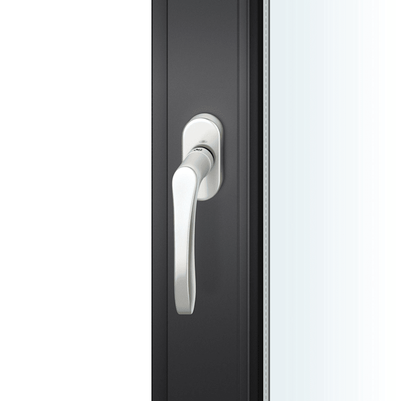 FSB Fenstergriff 34 1106; Produkttyp: Fenstergriff; Produkttyp (Hersteller): Fenstergriff; Ausführung: Standard; Rastung: Kugelrastung,90°; Stütznocken: mit Stütznocken; Material: Aluminium; Montageart: aufliegend; Befestigungsart: verdeckt verschraubt; Anwendung: für nach innen öffnende Fenster und Fenstertüren; Design: David Chipperfield; Zusatzausstattung: mit Bediensperre; Länge: 119 mm; Höhe: 61 mm; Befestigungsabstand: 43 mm; Form Rosette: oval; Breite Rosette: 32,5 mm; Höhe Rosette: 70 mm; Stärke Rosette: 10 mm; Durchmesser Stütznocken: 10 mm; Norm: DIN EN 13126-3,DIN 18267; Gütesiegel: RAL-GZ 607/9; Einsatzbereich: Drehkipp; Fensterwerkstoff: Holz,Aluminium,Kunststoff; Vierkant: 7 mm; Stift vorstehend: 24-34 mm; DIN-Richtung: DIN Links-Rechts; Farbe: silberfarben; Farbton: naturfarben; Oberfläche: eloxiert