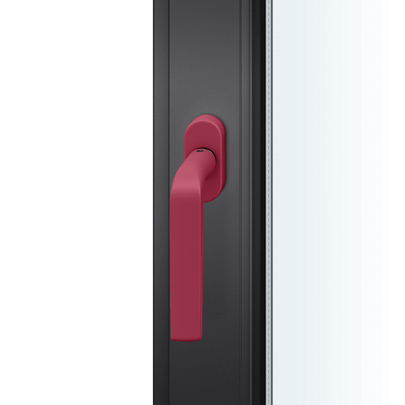 FSB Fenstergriff 34 1267; Produkttyp: Fenstergriff; Produkttyp (Hersteller): Fenstergriff; Ausführung: Standard; Rastung: 90°; Stütznocken: mit Stütznocken; Material: Aluminium; Montageart: aufliegend; Befestigungsart: verdeckt verschraubt; Anwendung: für nach innen öffnende Fenster und Fenstertüren; Design: Hartmut Weise; Zusatzausstattung: mit Bediensperre; Länge: 135 mm; Höhe: 53 mm; Befestigungsabstand: 43 mm; Form Rosette: oval; Breite Rosette: 32,5 mm; Höhe Rosette: 70 mm; Stärke Rosette: 10 mm; Durchmesser Stütznocken: 10 mm; Norm: DIN EN 13126-3,DIN 18267; Gütesiegel: RAL-GZ 607/9; Einsatzbereich: Drehkipp; Fensterwerkstoff: Aluminium,Holz,Kunststoff; Vierkant: 7 mm; Stift vorstehend: 24-34 mm; DIN-Richtung: DIN Links-Rechts; Farbton: LC 32101 rouge rubia; Oberfläche: pulverbeschichtet