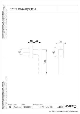 HOPPE Fenstergriff Toulon 0737/US947, Standard, eckig,Vierkant 7/20-30, naturfarben eloxiert