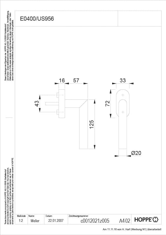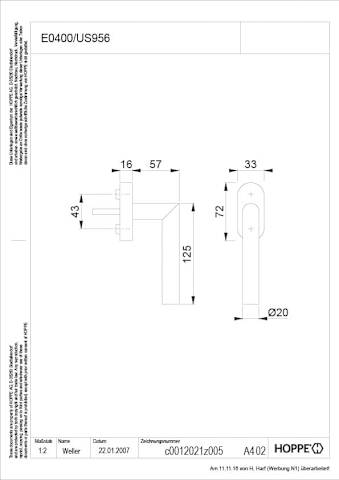 HOPPE Fenstergriff Amsterdam E0400/US956, Standard, oval,Vierkant 7/20-30, schwarz matt
