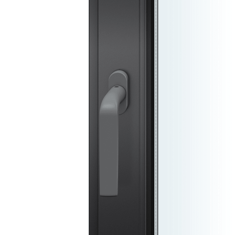 FSB Fenstergriff 34 1267; Produkttyp: Fenstergriff; Produkttyp (Hersteller): Fenstergriff; Ausführung: Standard; Rastung: 90°; Stütznocken: mit Stütznocken; Material: Aluminium; Montageart: aufliegend; Befestigungsart: verdeckt verschraubt; Anwendung: für nach innen öffnende Fenster und Fenstertüren; Design: Hartmut Weise; Länge: 135 mm; Höhe: 53 mm; Befestigungsabstand: 43 mm; Form Rosette: schmal oval; Breite Rosette: 27 mm; Höhe Rosette: 62 mm; Stärke Rosette: 10 mm; Durchmesser Stütznocken: 10 mm; Norm: DIN EN 13126-3,DIN 18267; Gütesiegel: RAL-GZ 607/9; Einsatzbereich: Drehkipp; Fensterwerkstoff: Aluminium,Holz,Kunststoff; Vierkant: 7 mm; Stift vorstehend: 24-38 mm; DIN-Richtung: DIN Links-Rechts; Farbton: LC 32010 gris foncé 31; Oberfläche: pulverbeschichtet