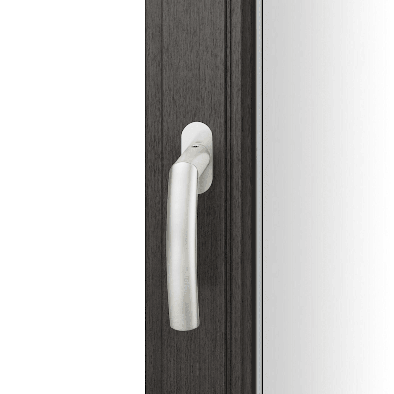 FSB Fenstergriff 34 1107; Produkttyp: Fenstergriff; Produkttyp (Hersteller): Fenstergriff; Ausführung: Standard; Rastung: 90°,Kugelrastung; Stütznocken: ohne Stütznocken; Material: Aluminium; Montageart: flächenbündig; Befestigungsart: verdeckt verschraubt; Anwendung: für nach innen öffnende Fenster und Fenstertüren; Design: Hartmut Weise; Länge: 124 mm; Höhe: 58 mm; Befestigungsabstand: 43 mm; Form Rosette: oval; Breite Rosette: 25,5 mm; Höhe Rosette: 60,5 mm; Stärke Rosette: 10,2 mm; Gütesiegel: RAL-GZ 607/9; Einsatzbereich: Drehkipp; Fensterwerkstoff: Holz; Vierkant: 7 mm; Stift vorstehend: 14-28 mm; DIN-Richtung: DIN Links-Rechts; Farbe: braun; Farbton: dunkelbronzefarben; Oberfläche: gestrahlt,eloxiert