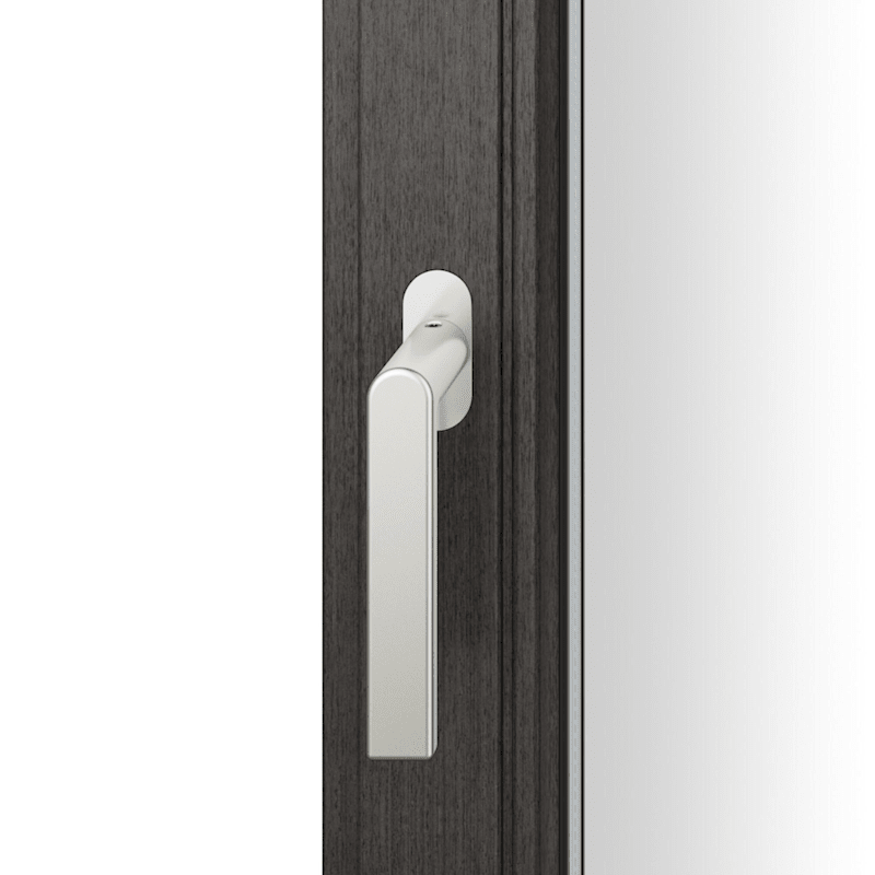 FSB Fenstergriff 34 1244; Produkttyp: Fenstergriff; Produkttyp (Hersteller): Fenstergriff; Ausführung: Standard; Rastung: 90°,Kugelrastung; Stütznocken: ohne Stütznocken; Material: Aluminium; Montageart: flächenbündig; Befestigungsart: verdeckt verschraubt; Anwendung: für nach innen öffnende Fenster und Fenstertüren; Design: gmp Architekten von Gerkan, Marg und Partner; Länge: 140 mm; Höhe: 58 mm; Befestigungsabstand: 43 mm; Form Rosette: oval; Breite Rosette: 25,5 mm; Höhe Rosette: 60,5 mm; Stärke Rosette: 10,2 mm; Gütesiegel: RAL-GZ 607/9; Einsatzbereich: Drehkipp; Fensterwerkstoff: Holz; Vierkant: 7 mm; Stift vorstehend: 14-28 mm; DIN-Richtung: DIN Links-Rechts; Farbe: braun; Farbton: dunkelbronzefarben; Oberfläche: gestrahlt,eloxiert