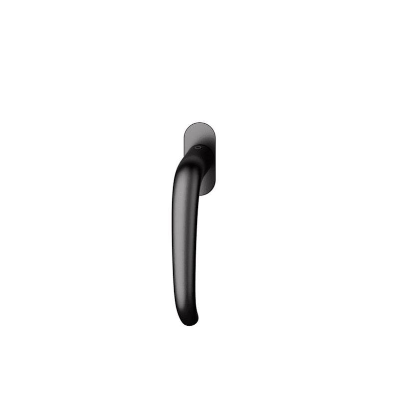 FSB Fenstergriff 34 1023; Produkttyp: Fenstergriff; Produkttyp (Hersteller): Fenstergriff; Ausführung: Standard; Rastung: 90°,Kugelrastung; Stütznocken: ohne Stütznocken; Material: Aluminium; Montageart: flächenbündig; Befestigungsart: verdeckt verschraubt; Anwendung: für nach innen öffnende Fenster und Fenstertüren; Länge: 123 mm; Höhe: 58 mm; Befestigungsabstand: 43 mm; Form Rosette: oval; Breite Rosette: 25,5 mm; Höhe Rosette: 60,5 mm; Stärke Rosette: 10,2 mm; Gütesiegel: RAL-GZ 607/9; Einsatzbereich: Drehkipp; Fensterwerkstoff: Holz; Vierkant: 7 mm; Stift vorstehend: 24-38 mm; DIN-Richtung: DIN Links-Rechts; Farbe: schwarz; Farbton: tiefschwarz; Oberfläche: farbig kunststoffbeschichtet