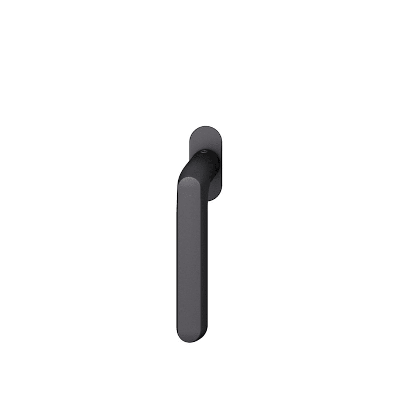 FSB Fenstergriff 34 1246; Produkttyp: Fenstergriff; Produkttyp (Hersteller): Fenstergriff; Ausführung: Standard; Rastung: 90°,Kugelrastung; Stütznocken: ohne Stütznocken; Material: Aluminium; Montageart: flächenbündig; Befestigungsart: verdeckt verschraubt; Anwendung: für nach innen öffnende Fenster und Fenstertüren; Design: Graft; Länge: 123 mm; Höhe: 54 mm; Befestigungsabstand: 43 mm; Form Rosette: oval; Breite Rosette: 25,5 mm; Höhe Rosette: 60,5 mm; Stärke Rosette: 10,2 mm; Gütesiegel: RAL-GZ 607/9; Einsatzbereich: Drehkipp; Fensterwerkstoff: Holz; Vierkant: 7 mm; Stift vorstehend: 14-28 mm; DIN-Richtung: DIN Links-Rechts; Farbe: schwarz; Oberfläche: gestrahlt,eloxiert