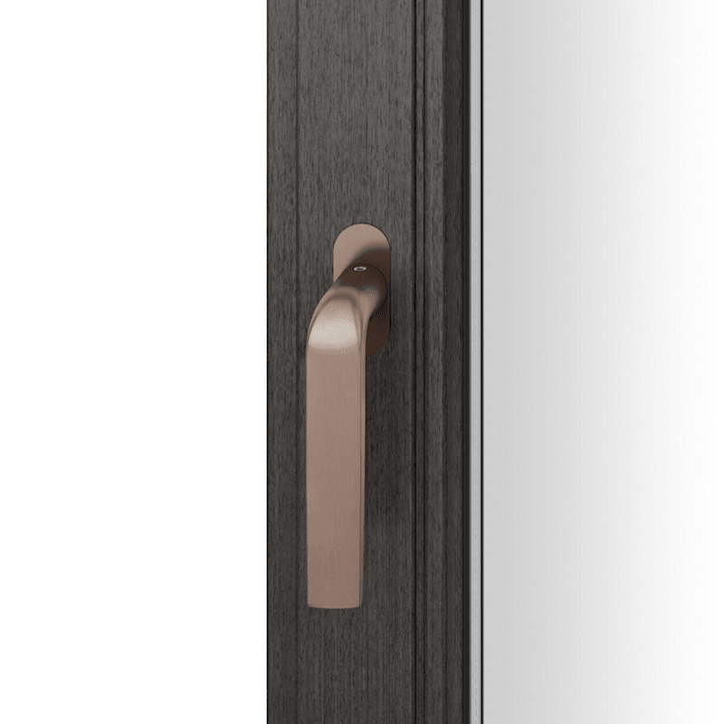 FSB Fenstergriff 34 1267; Produkttyp: Fenstergriff; Produkttyp (Hersteller): Fenstergriff; Ausführung: Standard; Rastung: 90°; Stütznocken: mit Stütznocken; Material: Bronze; Montageart: aufliegend; Befestigungsart: verdeckt verschraubt; Anwendung: für nach innen öffnende Fenster und Fenstertüren; Design: Hartmut Weise; Länge: 135 mm; Höhe: 53 mm; Befestigungsabstand: 43 mm; Form Rosette: oval; Breite Rosette: 25,5 mm; Höhe Rosette: 60,5 mm; Stärke Rosette: 10,2 mm; Durchmesser Stütznocken: 10 mm; Norm: DIN EN 13126-3,DIN 18267; Gütesiegel: RAL-GZ 607/9; Einsatzbereich: Drehkipp; Fensterwerkstoff: Aluminium,Holz,Kunststoff; Vierkant: 7 mm; Stift vorstehend: 14-28 mm; DIN-Richtung: DIN Links-Rechts; Farbe: braun; Farbton: dunkelbronze; Oberfläche: patiniert gewachst