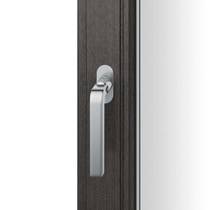 FSB Fenstergriff 34 1004; Produkttyp: Fenstergriff; Produkttyp (Hersteller): Fenstergriff; Ausführung: Standard; Rastung: 90°,Kugelrastung; Stütznocken: ohne Stütznocken; Material: Edelstahl; Montageart: flächenbündig; Befestigungsart: verdeckt verschraubt; Anwendung: für nach innen öffnende Fenster und Fenstertüren; Design: David Chipperfield; Länge: 120 mm; Höhe: 57 mm; Befestigungsabstand: 43 mm; Form Rosette: oval; Breite Rosette: 25,5 mm; Höhe Rosette: 60,5 mm; Stärke Rosette: 10,2 mm; Gütesiegel: RAL-GZ 607/9; Einsatzbereich: Drehkipp; Fensterwerkstoff: Holz; Vierkant: 7 mm; Stift vorstehend: 14-28 mm; DIN-Richtung: DIN Links-Rechts; Farbe: grau; Farbton: edelstahl; Oberfläche: poliert