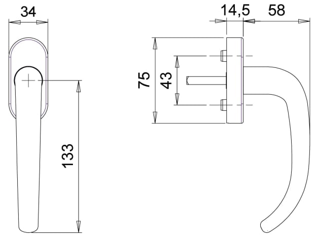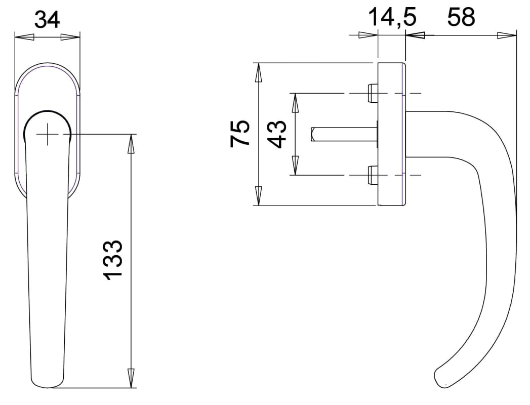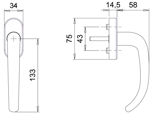 Meesenburg Artikelbezeichnung: FENSTERGRIFF 1015 EDELSTAHL MA1015 10N/37 STIFT