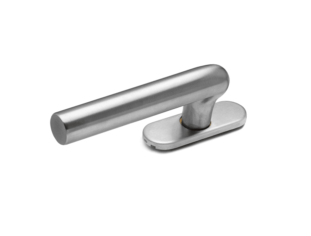 Knud Holscher Kollektion, Fenstergriff 16LF, LH, Schnappdeckel, 22x65mm, cc 43mm. Hergestellt aus hochwertigem, rostfreiem Edelstahl AISI 316, der vor starker Korrosion schützt. 20 Jahre Garantie.