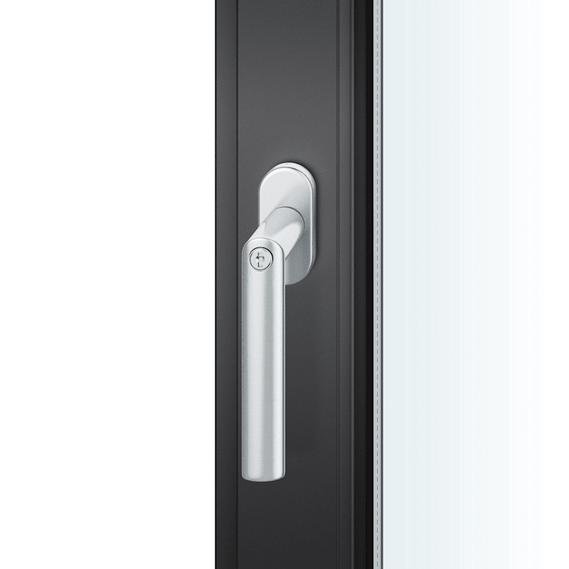 FSB Fenstergriff 34 1108; Produkttyp: Fenstergriff; Produkttyp (Hersteller): Fenstergriff; Ausführung: abschließbar; Rastung: 90°; Stütznocken: mit Stütznocken; Material: Edelstahl; Montageart: aufliegend; Befestigungsart: verdeckt verschraubt; Anwendung: für nach innen öffnende Fenster und Fenstertüren; Design: Hartmut Weise; Anzahl Schlüssel: 1 St.; Länge: 135 mm; Höhe: 56 mm; Befestigungsabstand: 43 mm; Form Rosette: oval; Breite Rosette: 32,5 mm; Höhe Rosette: 84,5 mm; Stärke Rosette: 21 mm; Durchmesser Stütznocken: 10 mm; Norm: DIN EN 13126-3,DIN 18267,DIN EN 1627; Gütesiegel: RAL-GZ 607/9; Einsatzbereich: Drehkipp; Fensterwerkstoff: Holz,Kunststoff,Aluminium; Vierkant: 7 mm; Stift vorstehend: 25-30 mm; DIN-Richtung: DIN Links-Rechts; Farbe: grau; Farbton: edelstahl; Oberfläche: fein matt; Schließung: gleichschließend