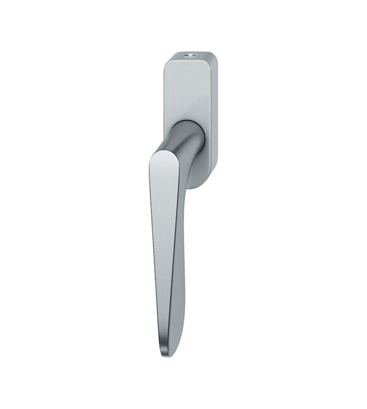 FSB Fenstergriff 34 1144; Produkttyp: Fenstergriff; Produkttyp (Hersteller): Fenstergriff; Ausführung: abschließbar; Variante TBT-Funktion: kippen vor drehen; Rastung: 90°; Stütznocken: mit Stütznocken; Material: Edelstahl; Montageart: aufliegend; Befestigungsart: verdeckt verschraubt; Anwendung: für nach innen öffnende Fenster und Fenstertüren; Design: Jasper Morrison; Anzahl Schlüssel: 1 St.; Länge: 131 mm; Höhe: 63 mm; Befestigungsabstand: 43 mm; Form Rosette: oval; Breite Rosette: 32,5 mm; Höhe Rosette: 84,5 mm; Stärke Rosette: 21 mm; Durchmesser Stütznocken: 10 mm; Norm: DIN EN 13126-3,DIN 18267,DIN EN 1627; Gütesiegel: RAL-GZ 607/9; Einsatzbereich: Drehkipp; Fensterwerkstoff: Holz,Kunststoff,Aluminium; Vierkant: 7 mm; Stift vorstehend: 30 mm; DIN-Richtung: DIN Rechts; Farbe: grau; Farbton: edelstahl; Oberfläche: fein matt; Schließung: gleichschließend