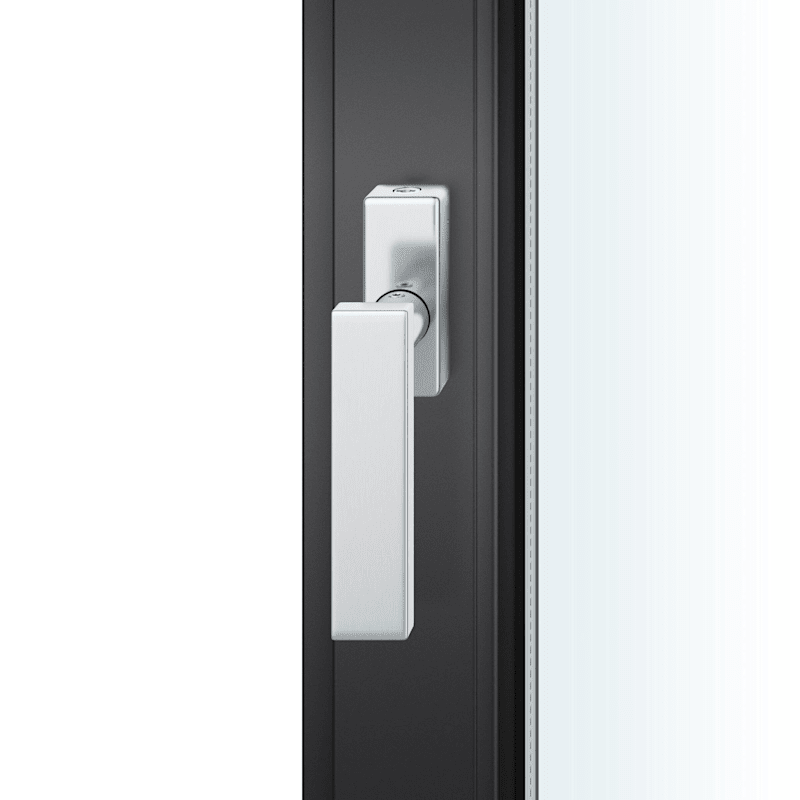 FSB Fenstergriff 34 1003; Produkttyp: Fenstergriff; Produkttyp (Hersteller): Fenstergriff; Ausführung: abschließbar; Rastung: 90°; Stütznocken: mit Stütznocken; Material: Edelstahl; Montageart: aufliegend; Befestigungsart: verdeckt verschraubt; Anwendung: für nach innen öffnende Fenster und Fenstertüren; Design: Johannes Potente; Anzahl Schlüssel: 1 St.; Länge: 130 mm; Höhe: 53 mm; Befestigungsabstand: 43 mm; Form Rosette: eckig; Breite Rosette: 32,5 mm; Höhe Rosette: 84,5 mm; Stärke Rosette: 21 mm; Durchmesser Stütznocken: 10 mm; Norm: DIN EN 13126-3,DIN 18267,DIN EN 1627; Gütesiegel: RAL-GZ 607/9; Einsatzbereich: Drehkipp; Fensterwerkstoff: Holz,Kunststoff,Aluminium; Vierkant: 7 mm; Stift vorstehend: 34 mm; DIN-Richtung: DIN Links-Rechts; Farbe: grau; Farbton: edelstahl; Oberfläche: fein matt
