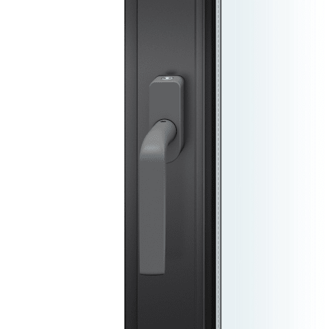 FSB Fenstergriff 34 1267; Produkttyp: Fenstergriff; Produkttyp (Hersteller): Fenstergriff; Ausführung: abschließbar; Rastung: 90°; Stütznocken: mit Stütznocken; Material: Aluminium; Montageart: aufliegend; Befestigungsart: verdeckt verschraubt; Anwendung: für nach innen öffnende Fenster und Fenstertüren; Design: Hartmut Weise; Anzahl Schlüssel: 1 St.; Länge: 135 mm; Höhe: 53 mm; Befestigungsabstand: 43 mm; Form Rosette: oval; Breite Rosette: 32,5 mm; Höhe Rosette: 84,5 mm; Stärke Rosette: 21 mm; Durchmesser Stütznocken: 10 mm; Norm: DIN EN 13126-3,DIN 18267,DIN EN 1627; Gütesiegel: RAL-GZ 607/9; Einsatzbereich: Drehkipp; Fensterwerkstoff: Holz,Kunststoff,Aluminium; Vierkant: 7 mm; Stift vorstehend: 34 mm; DIN-Richtung: DIN Links-Rechts; Farbton: LC 32010 gris foncé 31; Oberfläche: pulverbeschichtet