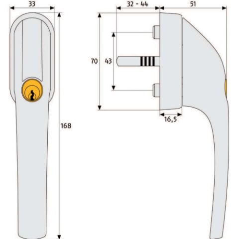 Abschließbarer Fenstergriff mit Druckzylinder und längenverstellbarem Vierkantstift. Einsatz und Anwendung: • Einsetzbar an handelsüblichen Fenstern anstelle des Fenstergriffs • Auch als Kindersicherung geeignet • Verschluss des Fenstergriffs über den Druckzylinder, öffnen mit dem Schlüssel • Gleichschließend kombinierbar mit weiteren ABUS-Fenstersicherungen Technologie: • Individuell einstellbarer, gesicherter Vierkantstift, 32-44 mm Länge • Vierkantstift 7 mm, Schraubenabstand 43 mm • Nach DIN 18267 Klasse 2 • 200Nm Abdreh- und Abreißfestigkeit • Verschleißarme Vierfach-Kugelverrastung • inkl. zwei Schlüssel