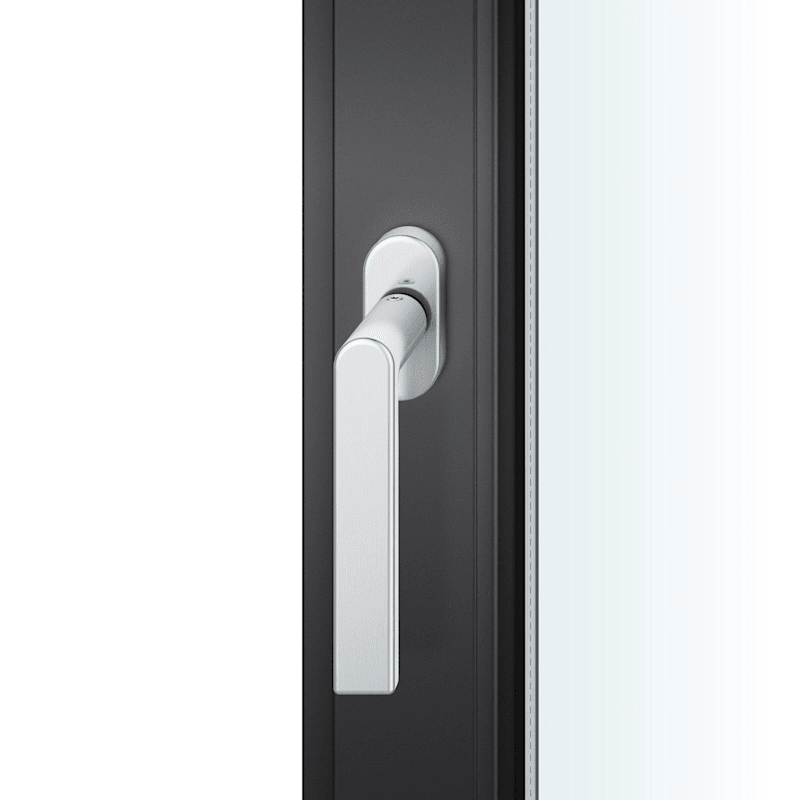 FSB Fenstergriff 34 1244; Produkttyp: Fenstergriff; Produkttyp (Hersteller): Fenstergriff; Ausführung: Standard; Rastung: 90°,Kugelrastung; Stütznocken: mit Stütznocken; Material: Edelstahl; Montageart: aufliegend; Befestigungsart: verdeckt verschraubt; Anwendung: für nach innen öffnende Fenster und Fenstertüren; Design: gmp Architekten von Gerkan, Marg und Partner; Zusatzausstattung: mit Bediensperre; Länge: 140 mm; Höhe: 58 mm; Befestigungsabstand: 43 mm; Form Rosette: oval; Breite Rosette: 32,5 mm; Höhe Rosette: 70 mm; Stärke Rosette: 10 mm; Durchmesser Stütznocken: 10 mm; Norm: DIN EN 13126-3,DIN 18267; Gütesiegel: RAL-GZ 607/9; Einsatzbereich: Drehkipp; Fensterwerkstoff: Aluminium,Holz,Kunststoff; Vierkant: 7 mm; Stift vorstehend: 24-34 mm; DIN-Richtung: DIN Links-Rechts; Farbe: grau; Farbton: edelstahl; Oberfläche: fein matt