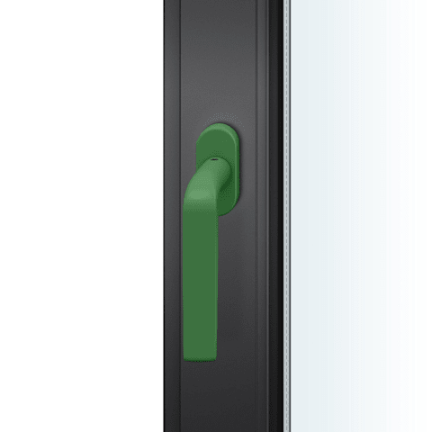 FSB Fenstergriff 34 1267; Produkttyp: Fenstergriff; Produkttyp (Hersteller): Fenstergriff; Ausführung: Standard; Rastung: 90°; Stütznocken: mit Stütznocken; Material: Aluminium; Montageart: aufliegend; Befestigungsart: verdeckt verschraubt; Anwendung: für nach innen öffnende Fenster und Fenstertüren; Design: Hartmut Weise; Länge: 135 mm; Höhe: 53 mm; Befestigungsabstand: 43 mm; Form Rosette: oval; Breite Rosette: 32,5 mm; Höhe Rosette: 70 mm; Stärke Rosette: 10 mm; Durchmesser Stütznocken: 10 mm; Norm: DIN EN 13126-3,DIN 18267; Gütesiegel: RAL-GZ 607/9; Einsatzbereich: Drehkipp; Fensterwerkstoff: Aluminium,Holz,Kunststoff; Vierkant: 7 mm; Stift vorstehend: 24-38 mm; DIN-Richtung: DIN Links-Rechts; Farbton: LC 32050 vert foncé; Oberfläche: pulverbeschichtet