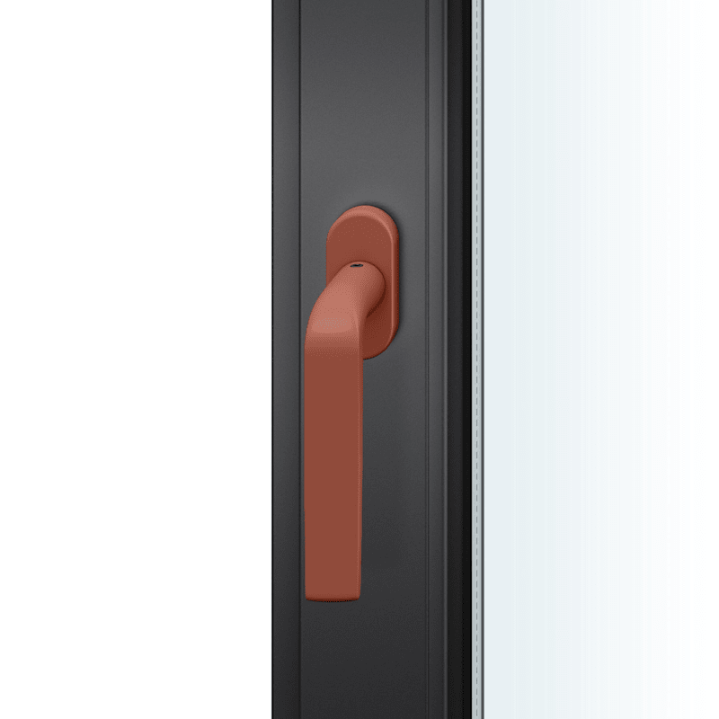 FSB Fenstergriff 34 1267; Produkttyp: Fenstergriff; Produkttyp (Hersteller): Fenstergriff; Ausführung: Standard; Rastung: 90°; Stütznocken: mit Stütznocken; Material: Aluminium; Montageart: aufliegend; Befestigungsart: verdeckt verschraubt; Anwendung: für nach innen öffnende Fenster und Fenstertüren; Design: Hartmut Weise; Länge: 135 mm; Höhe: 53 mm; Befestigungsabstand: 43 mm; Form Rosette: oval; Breite Rosette: 32,5 mm; Höhe Rosette: 70 mm; Stärke Rosette: 10 mm; Durchmesser Stütznocken: 10 mm; Norm: DIN EN 13126-3,DIN 18267; Gütesiegel: RAL-GZ 607/9; Einsatzbereich: Drehkipp; Fensterwerkstoff: Aluminium,Holz,Kunststoff; Vierkant: 7 mm; Stift vorstehend: 24-38 mm; DIN-Richtung: DIN Links-Rechts; Farbton: LC 32110 l`ocre rouge; Oberfläche: pulverbeschichtet