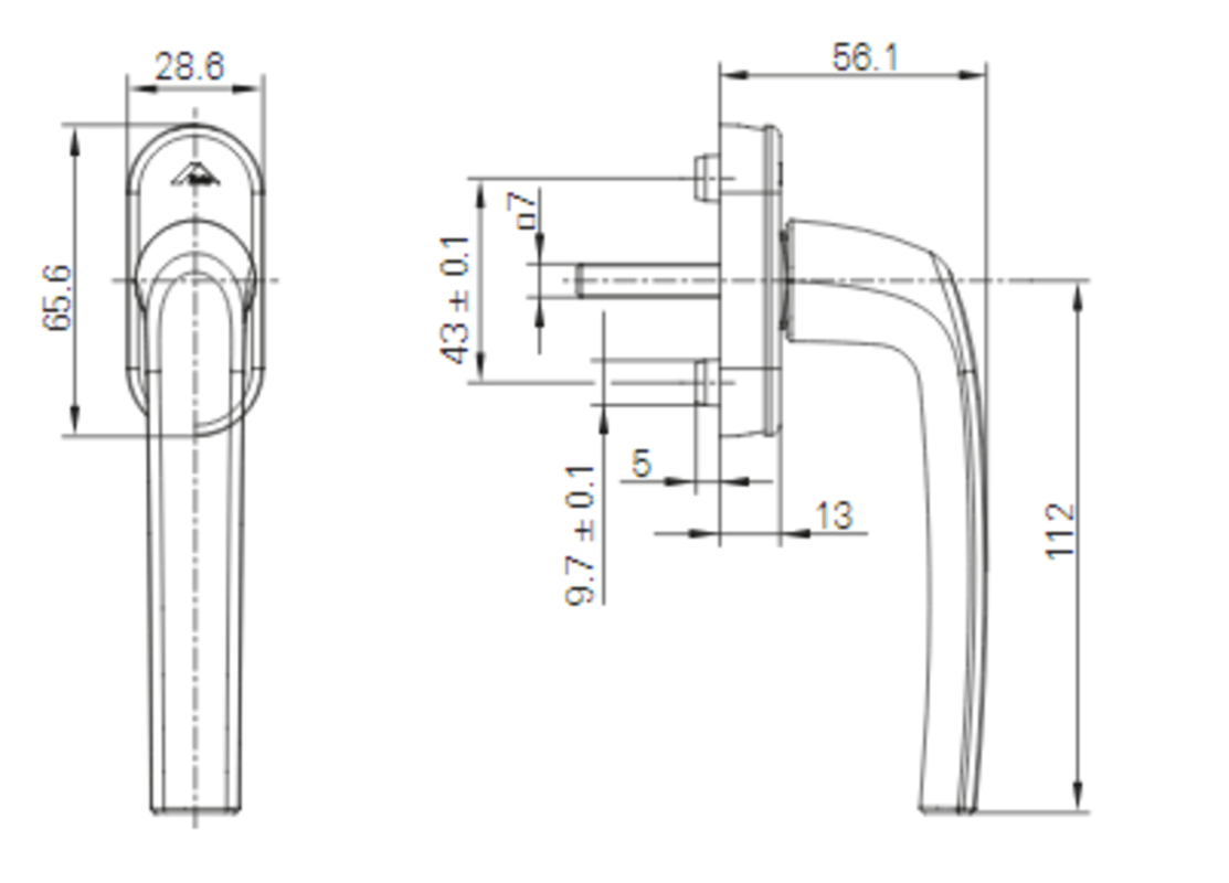 ROTO Fenstergriff Roto Samba; Material: Aluminium; Vierkant: 7mm; Befestigungsart: verdeckt verschraubt; Befestigungstechnik: mit Stütznocken; Lieferung: mit Vierkantstift,mit Schrauben; Basis: Fenste