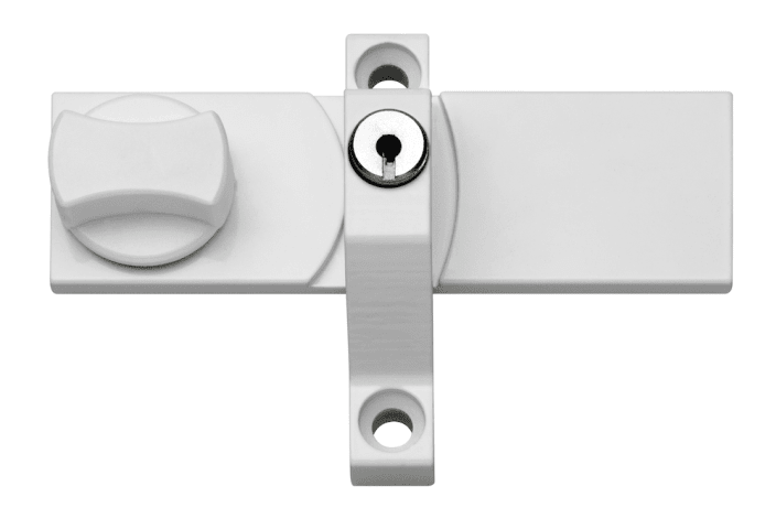 Meesenburg Artikelbezeichnung: FENSTERSICHERUNG SCHWENKBAR ZWEIFLG. RAL9016 WEISS1.222173
