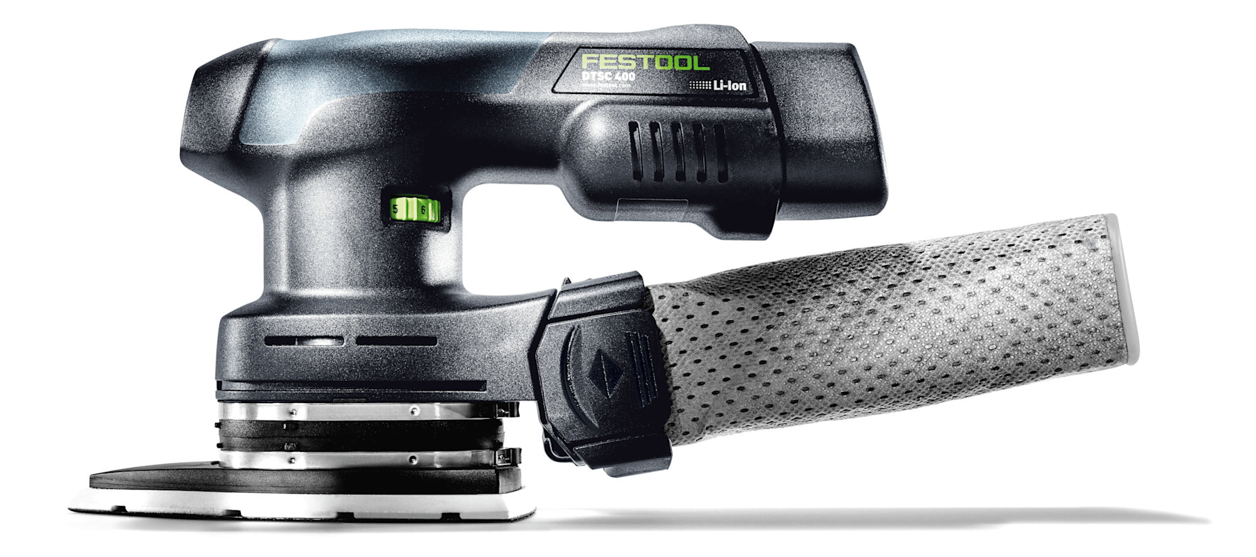 Für einzigartige Mobilität und Bewegungsfreiheit beim Arbeiten sorgen die neuen Akku-Kompaktschleifer ETSC 125, RTSC 400, DTSC 400. Der starke 18 V Bluetooth® Ergo-Akkupack mit 3,0 Ah garantiert Leistung wie aus der Steckdose. Und ist der Schlüssel für eine äußerst kompakte Bauweise mit ausbalancierte Gewichtsverteilung und perfekter Ergonomie bei nur 1,4 kg Gewicht. Die Eigenabsaugung in Kombination mit dem Longlife-Staubfangbeutel ermöglicht flexibles Handling der Maschine – ermüdungsarm auch über Kopf, senkrecht oder an schwer erreichbaren Stellen. Der Bluetooth® Akkupack sorgt für unkompliziertes Arbeiten in Kombination mit einem Bluetooth®-fähigen Festool Absaugmobil und sorgt dafür, dass der Sauger im AUTO-Modus beim Starten des Akkuschleifers automatisch startet. Für unbegrenzte Laufzeit lässt sich der Akkupack gegen den plug it-Netzadapter tauschen – ideal für stationäre Einsätze und ebenfalls in Kombination mit einem Festool Absaugmobil. Kabellos Schleifen wo ein Stromanschluss nicht oder nur mit großem Aufwand zur Verfügung steht (z.B. im Außenbereich, auf dem Gerüst)|Mobiles Arbeiten wenn Netzkabel und Saugschlauch bei der Anwendung stark störend sind (z.B. vertikale Flächen, Überkopf-Schleifen, Kanten verputzen,…)|Ideal bei senkrechten Flächen oder Arbeiten über Kopf|Einhandschleifen für kleine und schmale Flächen|Abschleifen von Farben und Lacken an Fensterrahmen, Türzargen und am Dachgesims|Mit plug it-Netzadapter als Schleifmaschine mit unbegrenzter Laufzeit im elektrischen Dauerbetrieb - ideal in Kombination mit einem Festool Absaugmobil im Innenbereich|Komfortabel arbeiten mit Absaugung – Bluetooth® Akkupack startet Bluetooth®-fähiges Absaugmobil im AUTO-Modus automatisch