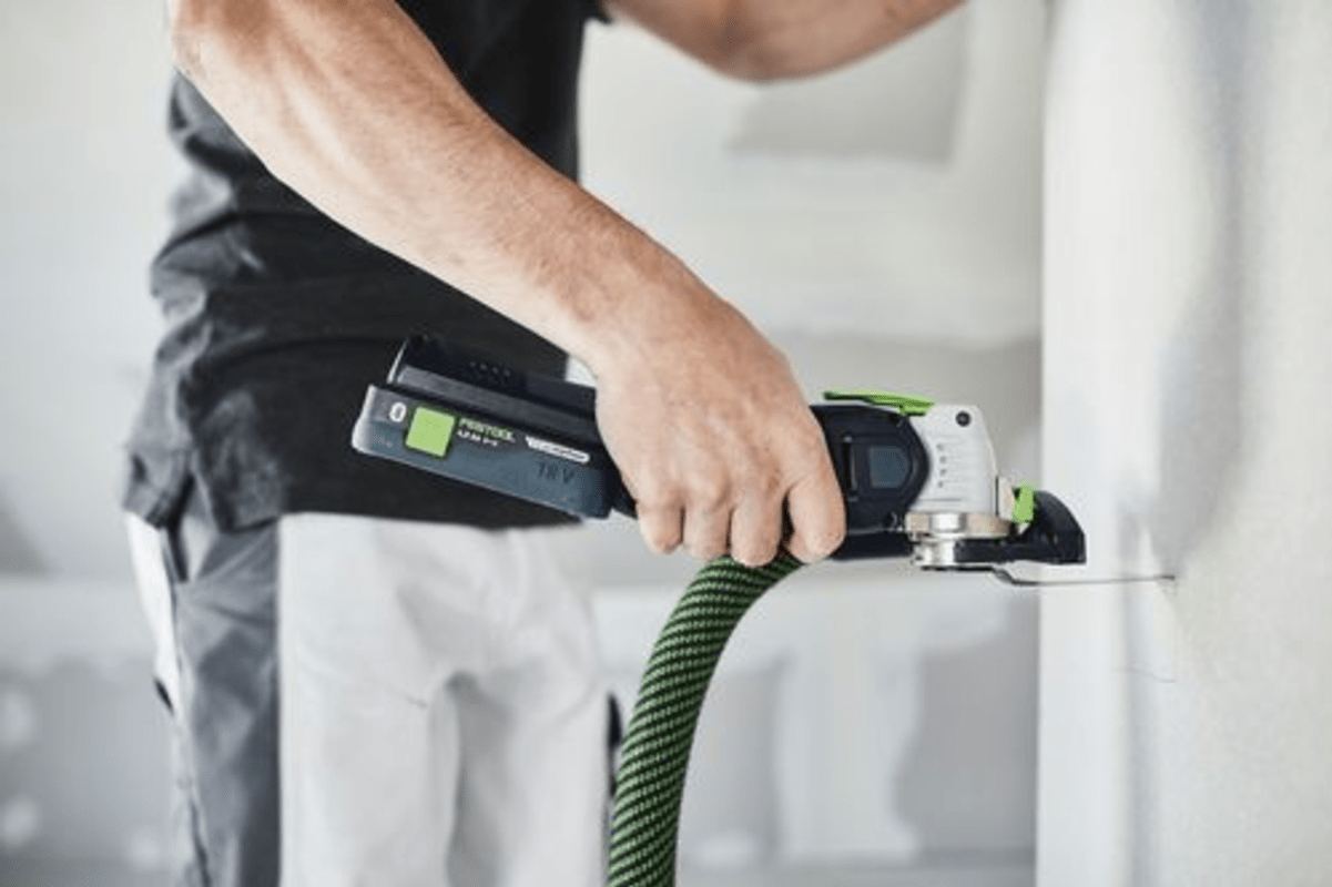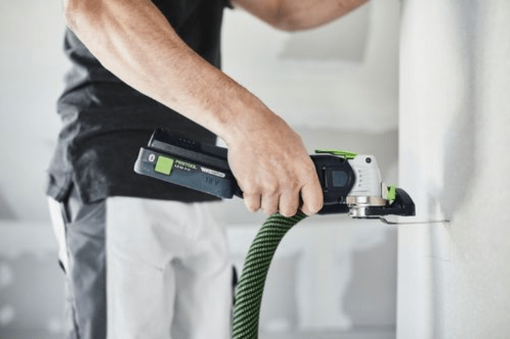 Durchdacht: Optionales System-Zubehör ermöglicht exakt geführte Eintauchschnitte sowie staubarmes Sägen - selbst bei Überkopf-Arbeiten